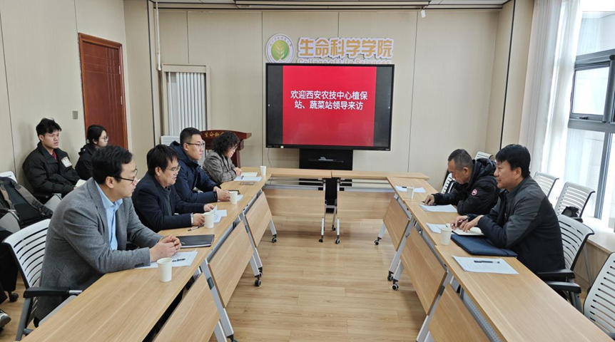 3月12日上午,西安市农业技术推广中心植保站首席专家徐进研究员、蔬菜站站长孙喜军高级农艺师一行到访陕西省旱区生物资源与绿色智慧农业“一带一路”联合实验室,围绕农业科技创新、平台共建共享、成果国际推广、人才联合培养等开展座谈交流。座谈会由 联合实验室主任张立新教授主持,实验室管理办公室核心成员孙道阳副教授、徐虹副教授、杨凯峰副教授全程参会。