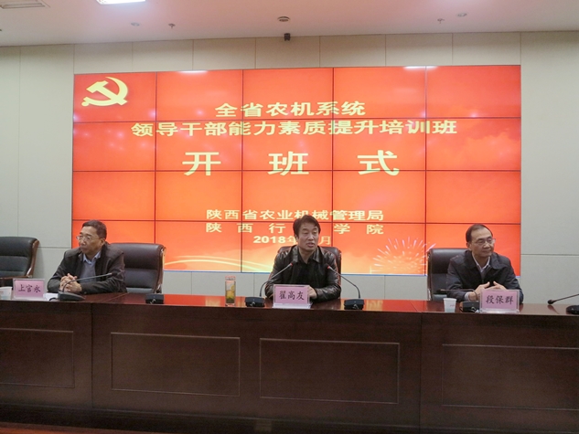 11月15-16日,全省农机系统领导干部能力素质提升培训班在陕西行政学院举办。省农机局副局长翟高友参加开班式并讲话,上官永副局长主持开班式。