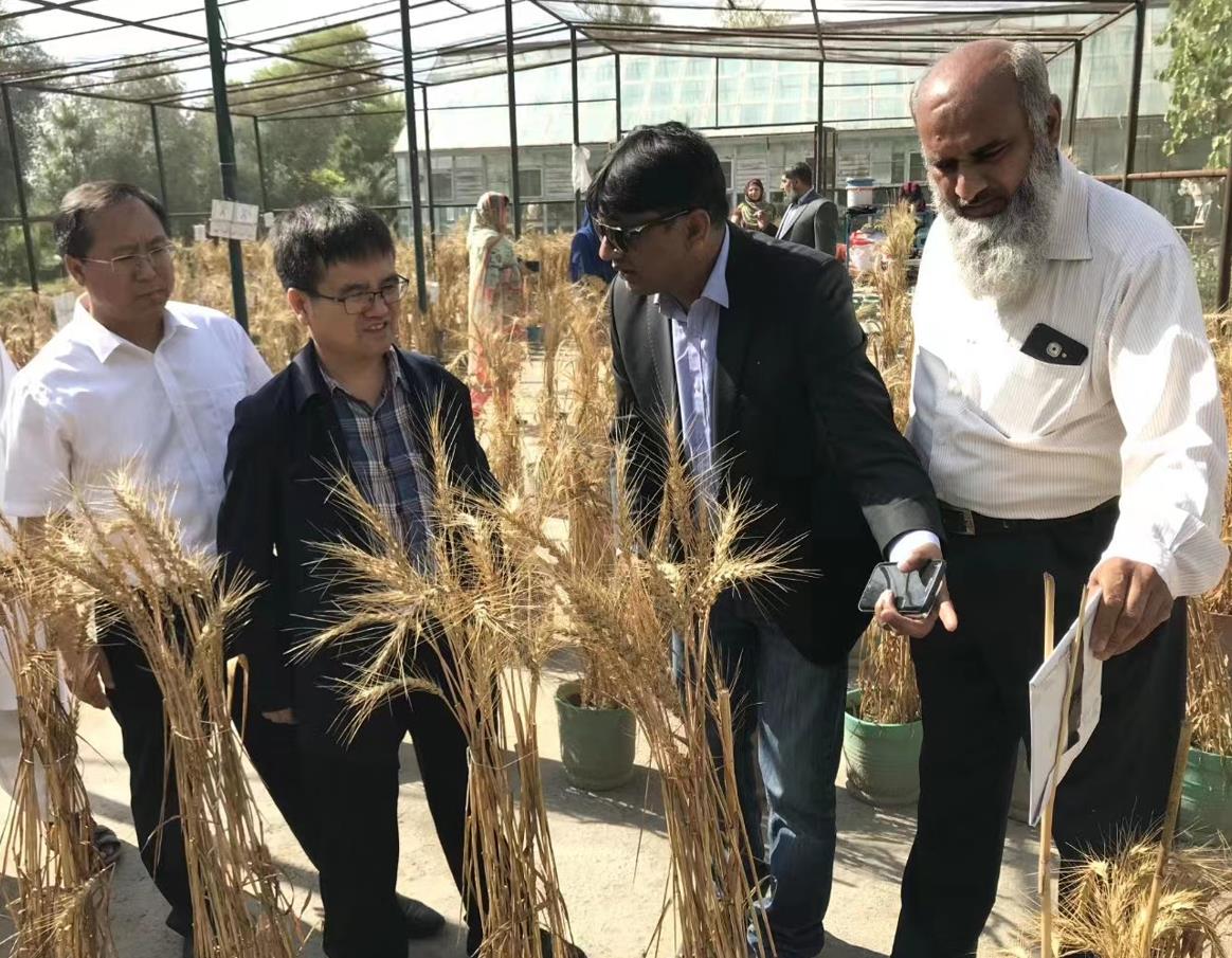 Prof. Zhang Lixin (L2) discusses wheat growth with Pakistani side [Photo provided to CEN]