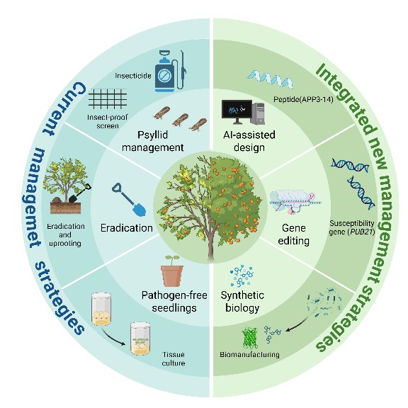 近期,中国科学院微生物研究所研究团队,阐明了进化信息指导的病虫害管理(EIPM)的核心逻辑,即以进化原理为底层框架,结合人工智能、基因编辑、合成生物学等前沿技术,为HLB防控提供长效、精准的创新解决方案。下一步,随着EIPM理念与人工智能、合成生物学等技术的深度融合,有望为全球柑橘产业可持续发展注入新动能,并为其他作物毁灭性病害防控提供“进化+技术”的跨学科解决方案。