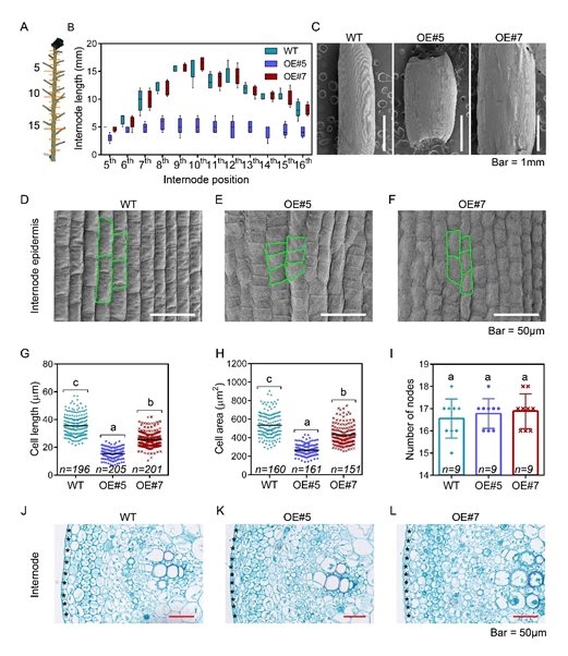 图2 MeHDZ14负调控节间细胞长度影响节间距