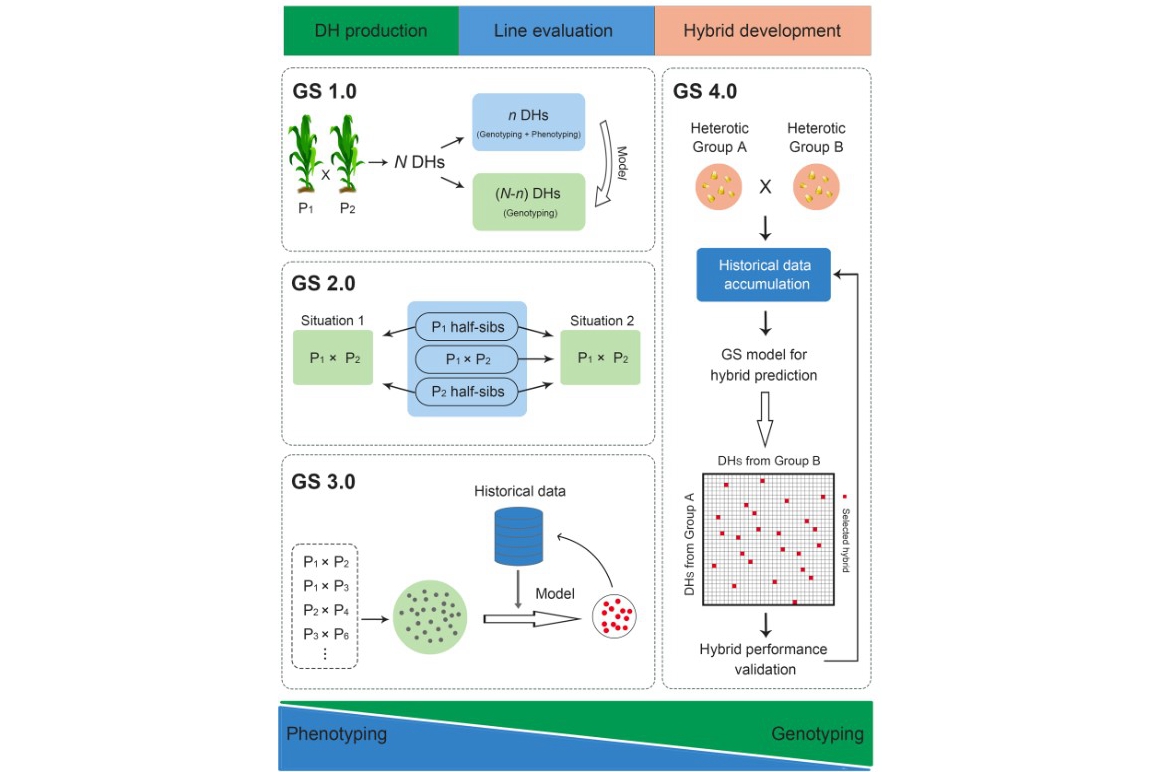 近日,由中国农业科学院作物科学研究所领衔、联合国内外多个研究团队在《分子植物(Molecular Plant)》上在线发表观点文章,重点探讨了如何在育种实践中整合全基因组选择(GS)和双单倍体(DH)技术,并创新性地提出了全基因组选择4.0的概念,明确了每个阶段的具体育种流程和技术理论基础,并展望了未来的技术发展。